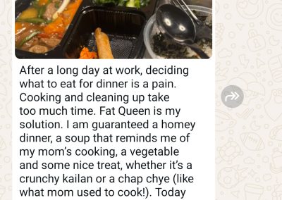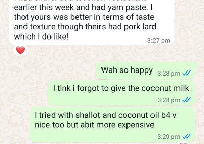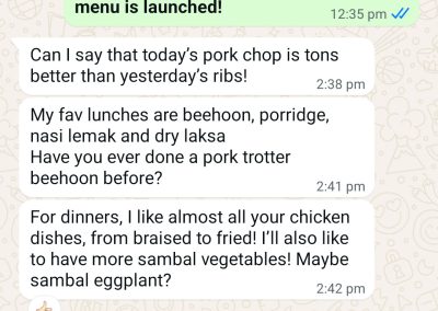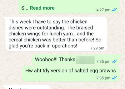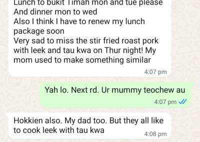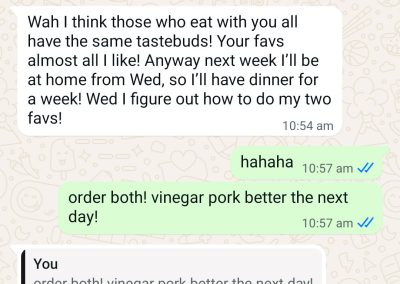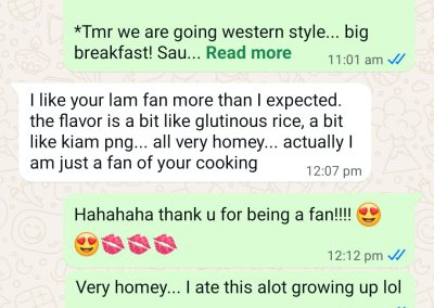 This 2.5years customer is a 1pax tingkat customer who has been so supportive not only for tingkat dinner, but also lunch and festive seasons too! We are born in the same era and we have this love for nostalgia dishes, just like how our grandma used to make them. We are also both super foodie! I love it when she shares with me the food adventures she is on when she is overseas – makes me, the one in sg, able to experience the food and culture through her eyes (though minute but in its own way, I am super appreciative!)