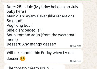 Scrolling through almost 1.5years of whatsapp conversation just sees them making requests of when to have/not have dinner… auto renewals, occassional feedback, that’s about it. Silently eating… but that doesn’t mean I am unaware of you. I am of course, aware of every single customer, perks of a 1-person business.