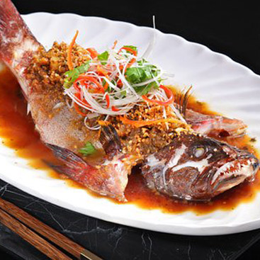 Whole red grouper, butterfly-cut and steamed. You choose any 1 of the below 3 cooking styles: