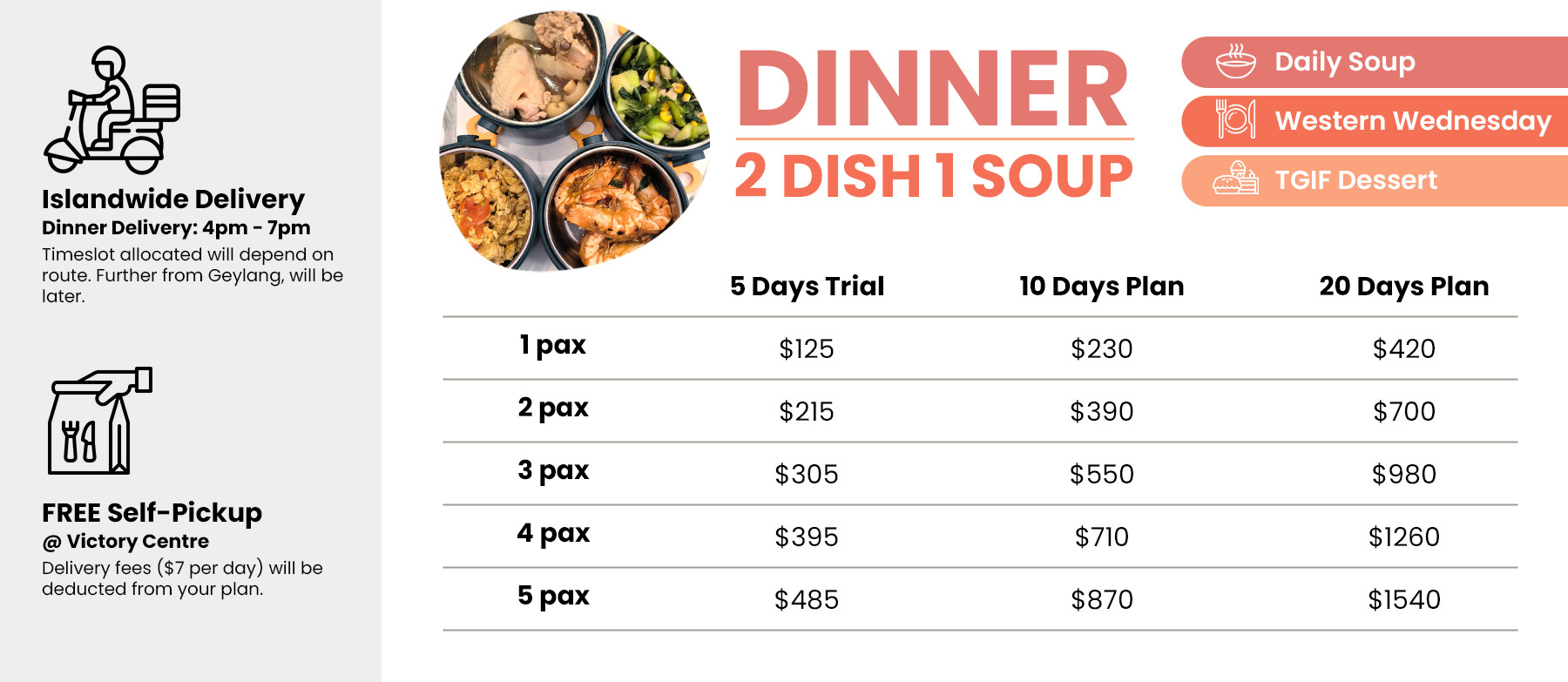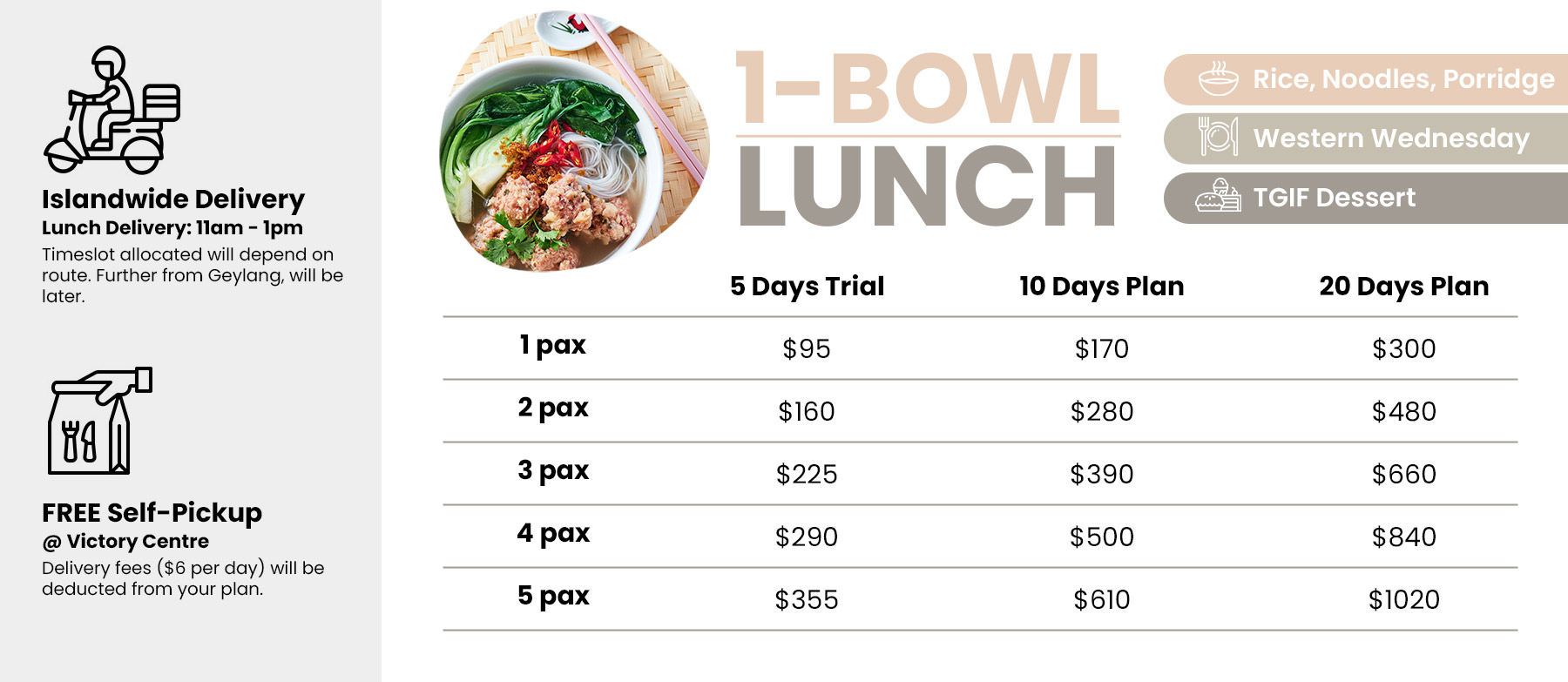 - If you prefer to have NO rice, you may opt to replace your rice with half portion side dish or soup, as per your preference.