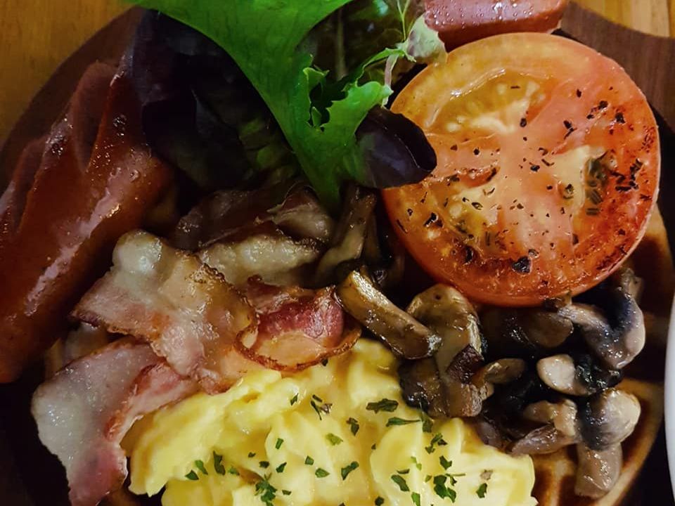 Am a fan of good waffles and their buttermilk waffles are absolutely fantastic + they have both sweet and savoury option!!! Thick light flavourful fluffy buttermilk waffles with superb sausage that has the perfect casing… Scrambled eggs done to perfection and nicely sauted mushroom…